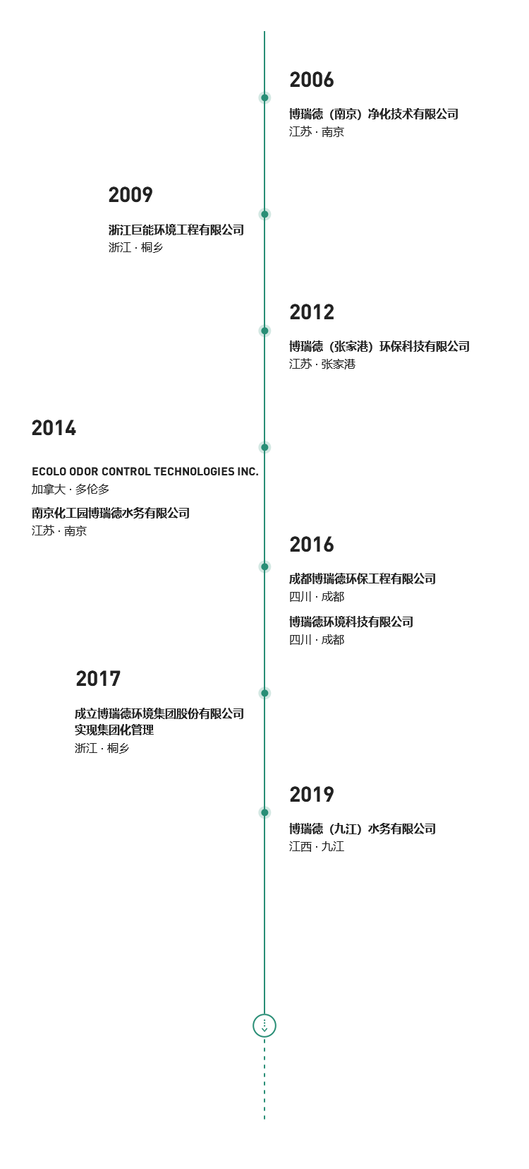 博瑞德環境集團經過十餘年的發展,已成爲化工廢水治理領域的佼佼者。集團集聚國内外高層次人才,依靠自主知識産權技術結合豐富的實踐經驗,爲工業企業和工業園區提供環保及公用工程一站式解決方案。集團業務以化工廢水治理及其資源化爲核心,涵蓋廢水、廢氣、污泥多個領域。在其業務範圍内爲客戶提供包括技術、設計、工程、投資、運營在内的一站式服務。集團發展立足長三角,輻射全國,志向全球,于2014年收購加拿大ECOLO公司,拓寬集團業務領域,加速國際化戰略布局。目前集團已擁有18家子公司,其中6家爲高新技術企業。